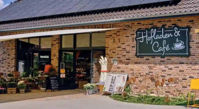Direkt neben dem Hofladen lädt das gemütliche Café zum Verweilen und Genießen ein. Mit seinem rustikalen Ambiente im Stil einer alten Scheune bietet es eine erholsame Atmosphäre und einen herrlichen Blick über die Felder. Hier können Sie sich eine Auszeit gönnen und sich von den hausgemachten Köstlichkeiten verwöhnen lassen, die täglich frisch zubereitet werden.