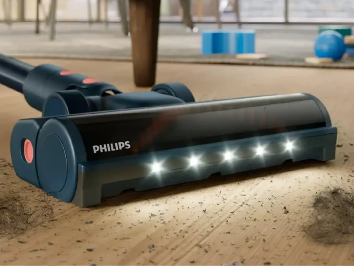 Ein weiteres herausragendes Merkmal ist die TriActive Multi-LED-Düse. Die integrierte LED-Beleuchtung macht selbst feinsten Staub in dunklen Ecken und unter Möbeln sichtbar. Bei den Tests hat sich gezeigt, dass dadurch kein Schmutz übersehen wird, was zu einem sichtbar gründlicheren Reinigungsergebnis führt. Die Düse passt sich zudem hervorragend an verschiedene Bodenarten an und reinigt sowohl Hartböden als auch Teppiche mit bemerkenswerter Effizienz, was ihn zu einem echten Allrounder macht.